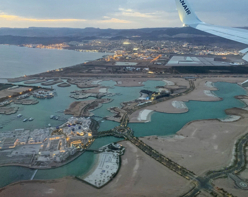 Onze vlucht vanaf Keulen vertrekt zonder problemen om 12:00 uur en 4,5 uur later landen we op King Hussein Airport in Aqaba. Het uitzicht vanuit het vliegtuig is echt prachtig wanneer je boven Aqaba vliegt. Het tijdsverschil is 2 uur in de winter met Nederland, en in Aqaba is het dan 17;30 uur. In de zomer is het tijdsverschil 1 uur.