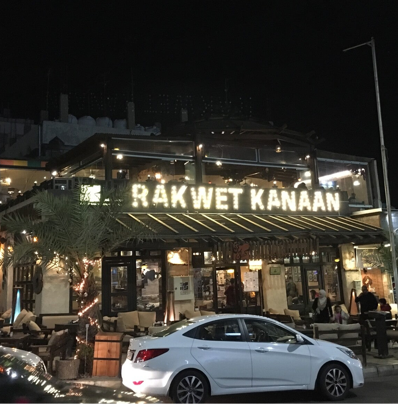 Rakwet Kanaan is een populaire tent, het is er gezellig en knus. Op de menukaart staan rijst, dadels, kip, vis, lamsvlees, falafel (onder andere gemaakt met kikkererwten) en salades. Ik vond zelf de Magloubah (rijst, diverse groenten en kip of vlees) erg lekker. Ook wordt er alcohol verkocht. Hier kun je gerust gaan eten; volop keus, en er hangt een leuke sfeer. Er is zelfs een Rooftop Bar.