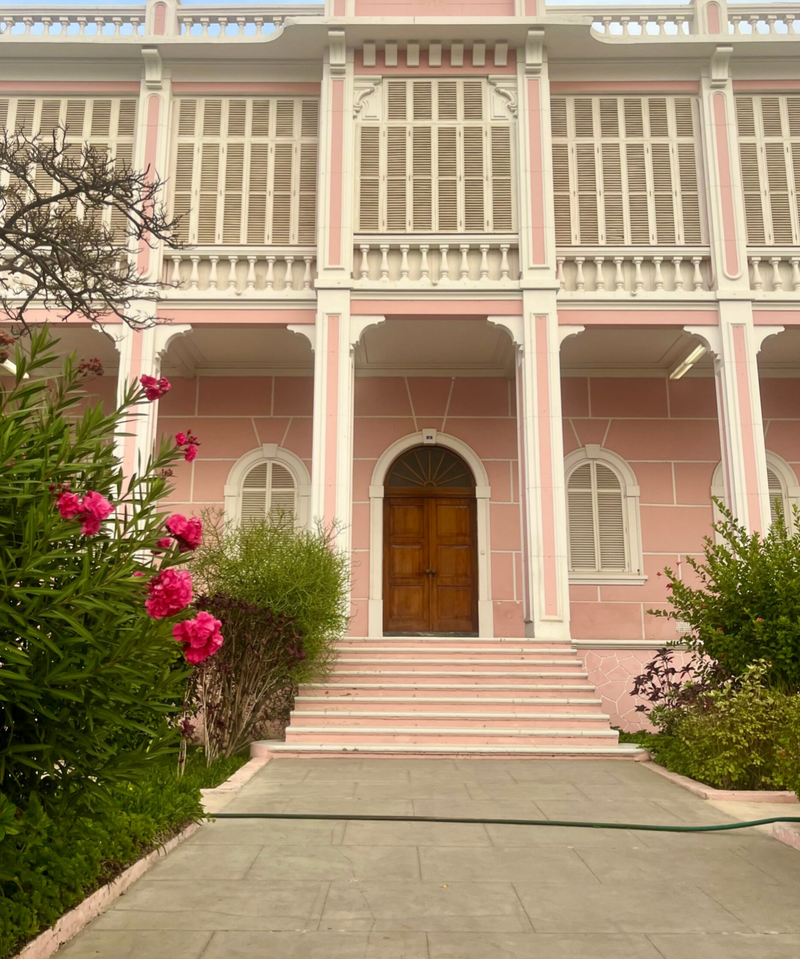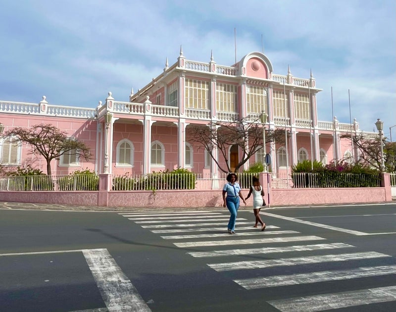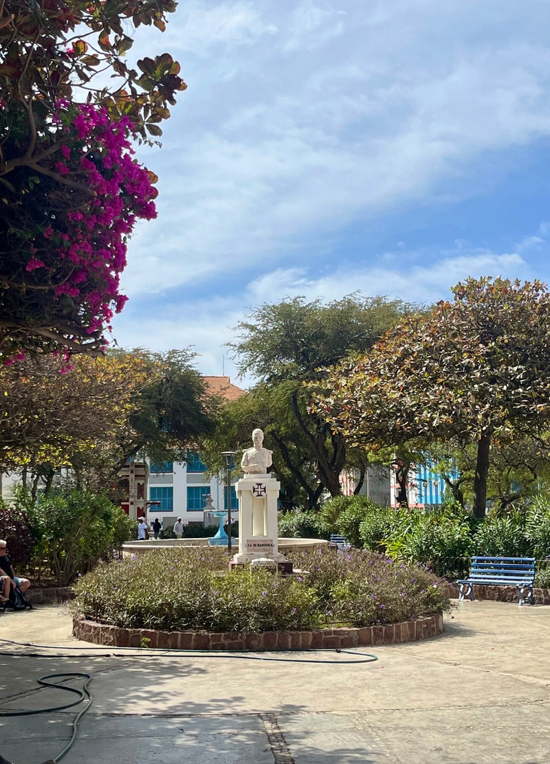 We starten de rondleiding met Frederic bij het Palácio do Povo. Het schitterende roze gebouw is niet te missen in de stad. Palácio do Povo is een bijzonder architectonisch monument dat dient als symbool van het rijke culturele erfgoed van de stad. Dit grootse gebouw, oorspronkelijk gebouwd tijdens het koloniale tijdperk, is zorgvuldig bewaard gebleven en fungeert nu als locatie voor verschillende overheids- en culturele evenementen. Het ontwerp van het paleis bestaat uit een mix van Portugese koloniale architectuur en lokale Kaapverdische elementen, waardoor het een unieke en pittoreske plek is. Op het moment is het jammer genoeg gesloten, maar de buitenkant is ook al prachtig.