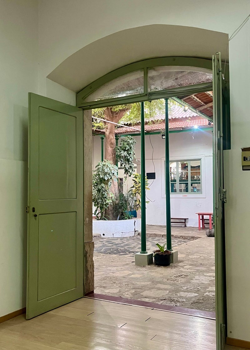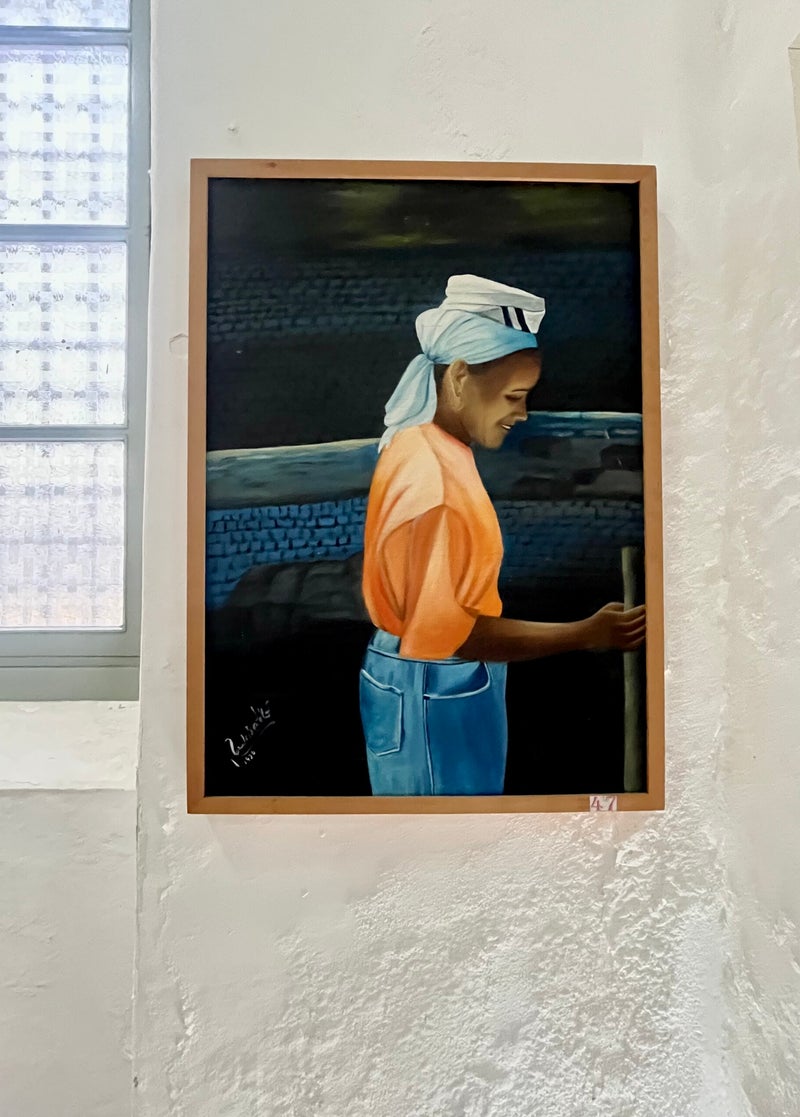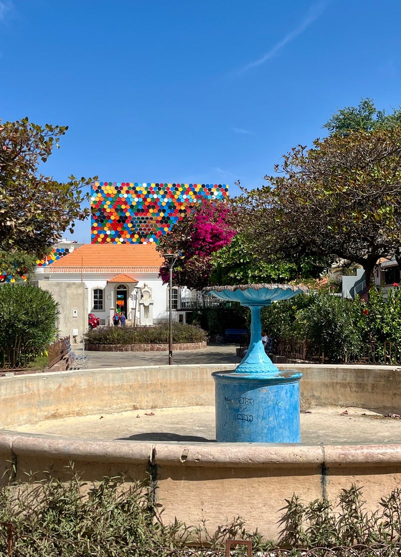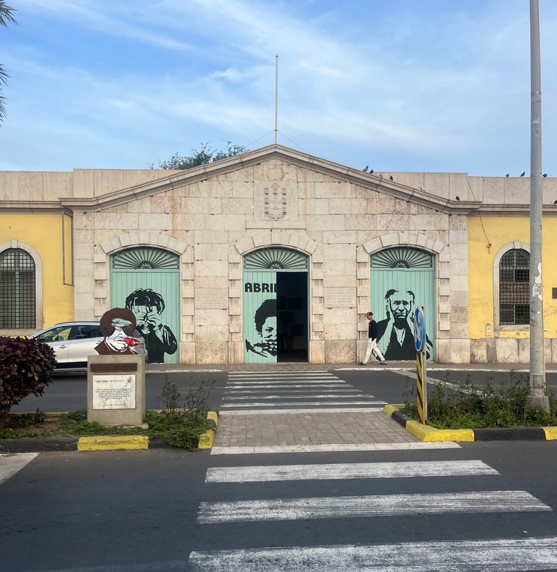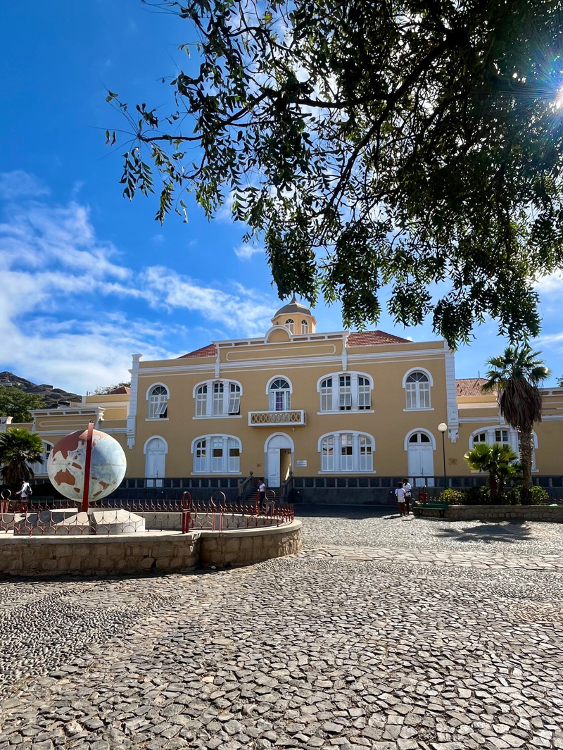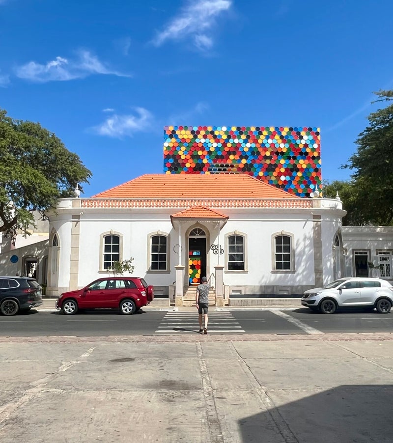 Hoog tijd om nog wat cultuur te ontdekken in Mindelo. We wandelen vanaf het strand naar het CNAD gebouw. Dit kleurrijke pand springt van verre al meteen in het oog. Het Centro Nacional de Arte, Artesanato e Design (CNAD) is een cultureel centrum in Mindelo en fungeert als een nationaal centrum voor kunst, ambacht en design. Het biedt ruimte voor tijdelijke en permanente tentoonstellingen, creatieve residenties en dient als archief voor zowel traditionele als hedendaagse Kaapverdische kunst. Het CNAD is gevestigd aan de Praça Amílcar Cabral, een mooie klein pleintje.