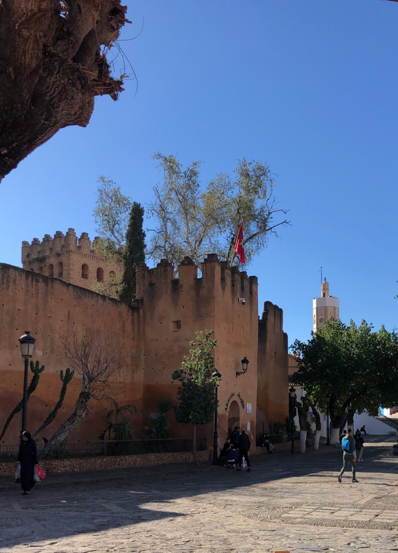 Het laatste stuk van de tour gaat helemaal omhoog naar de Spaanse Moskee. De Spaanse moskee is een erfenis van de Spaanse bezetting in 1920. De kleine witte moskee was als valstrik bedoelt. De moskee is daardoor nooit in gebruik genomen. Door zijn ligging is de moskee tegenwoordig een populaire attractie in Chefchaouen, want hier moet je zijn tijdens zonsopkomst en zonsondergang. Het is een redelijk steile klim maar goed te doen. In de zomer is het file lopen, zorg dus dat je op tijd boven bent. Nu is het rustig bij de Moskee. Er voldoende plek om op de muurtjes te zitten. Het uitzicht is fantastisch.