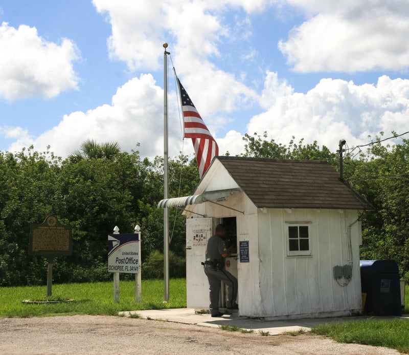 Tijdens je rit door de Everglades is de kans groot dat je langs het kleinste postkantoor van de USA komt. Het is een klein schuurtje op US Route 41 in de buurt van Ochopee. Ochopee Post Office, is opgemeten slechts 2 bij 2,5 meter. Letterlijk en figuurlijk het kleinste postkantoor van Amerika.