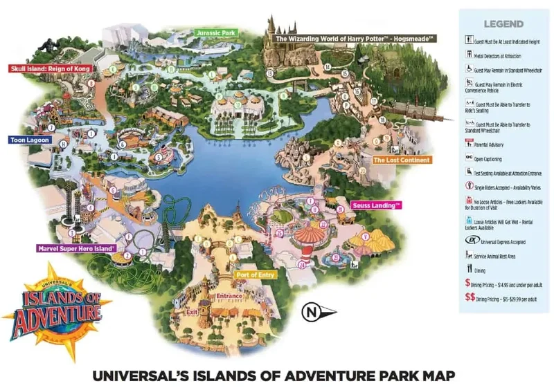 Als we binnen lopen, worden we al overweldigd door alle toeters en bellen overal. Vanaf de ingang loop je door het themagebied The Lost World en onder een hoge stenen poort door het dorpje binnen. Het is fantastisch hoe Amerikanen dit toch altijd zo goed voor elkaar hebben. De attracties en omgeving zijn oogverblindend mooi. Dit is een droom voor iedere Harry Potter fan. De besneeuwde daken zijn een vreemde gewaarwording wanneer je in je korte broek door het park loopt. De details die overal in zijn verwerkt zijn grandioos. Je hebt het ideee zelf in Hogwarts te zijn. Islands of Adventure heeft als topattractie Harry Potter and the Forbidden Journey in het Hogwarts kasteel. Wil je een lange wachtrij voorkomen, dan zou je aan het begin van de dag hier meteen naartoe moeten gaan. De wachtrij kan nl wel oplopen tot 3 uur.