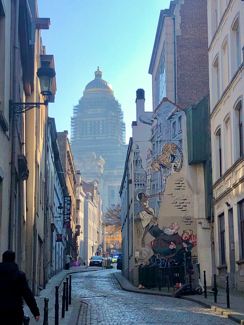 We sjouwen verder, en komen langs het Justitiepaleis. Dat kan ook bijna niet anders in deze wijk. Een tip is helemaal naar boven te lopen, voor een prachtig uitzicht over de stad. Het pad naar boven is helemaal vol met straatkunst. Ik weet niet of dat altijd zo is, maar nu wel. Het is prachtig gedaan.