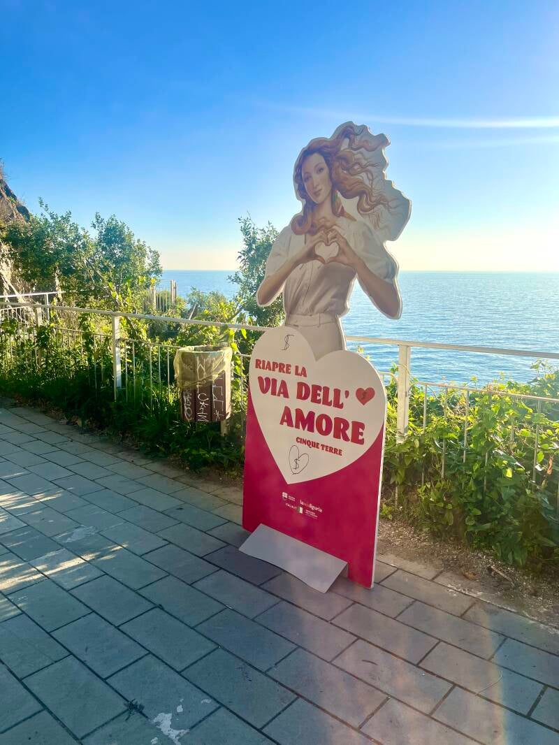 Na 12 jaar gesloten te zijn geweest, is een van de meest iconische en romantische wandelpaden ter wereld eindelijk weer heropend voor het publiek: de "Via dell’Amore" in Cinque Terre. Dit korte pad is het meest geliefd en biedt prachtige, romantische uitzichten. Het pad is eindelijk op 9 augustus 2004 weer geopend voor publiek. Echter, het is vaak gesloten vanwege technisch onderhoud. Ook in de week in november dat wij er waren, was het pad dicht.