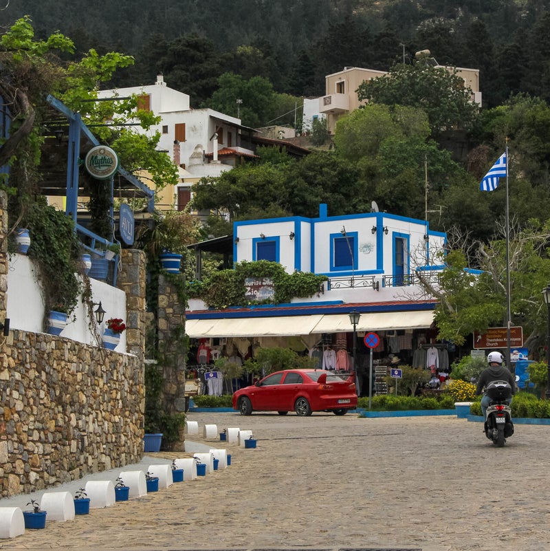 Als de drankjes op zijn, stappen we weer in onze bolides en rijden via Antimachia naar Magic Beach. Antimachia ligt in het midden van Kos en is een authentiek dorpje zoals bezoekers het graag zien. Tijdens de rit komen we langs een van de 2 kerken die het stadje rijk is.