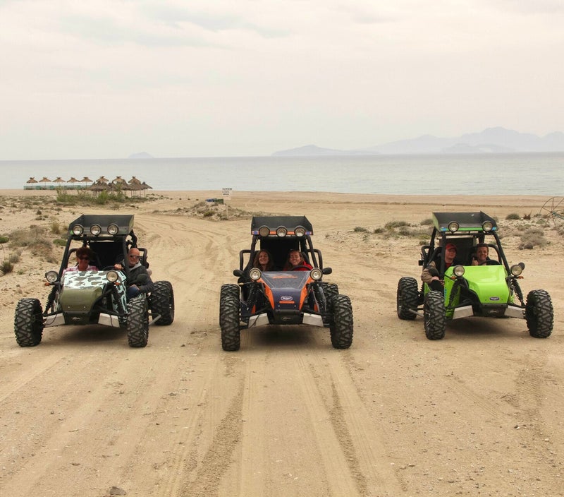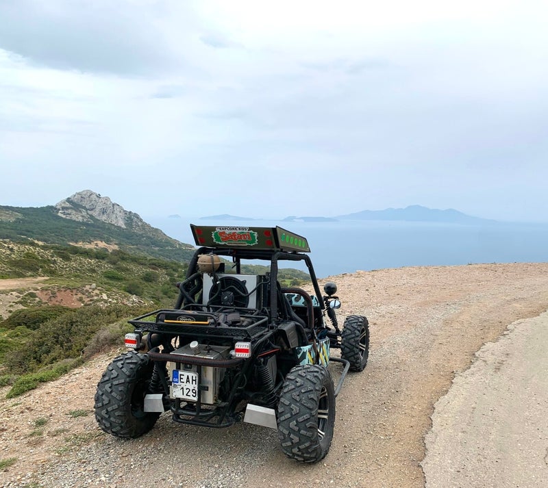 De mooiste strandjes zijn het moeilijkst te bereiken. Dat geldt ook voor Kos. Het laatste stuk naar Mystic Beach helemaal onderin Kos, is een hobbelige zandweg. Voor onze Buggies is het geen probleem. Rijdt je hier met een auto, dan is een 4 x 4 Drive aanbevolen.
