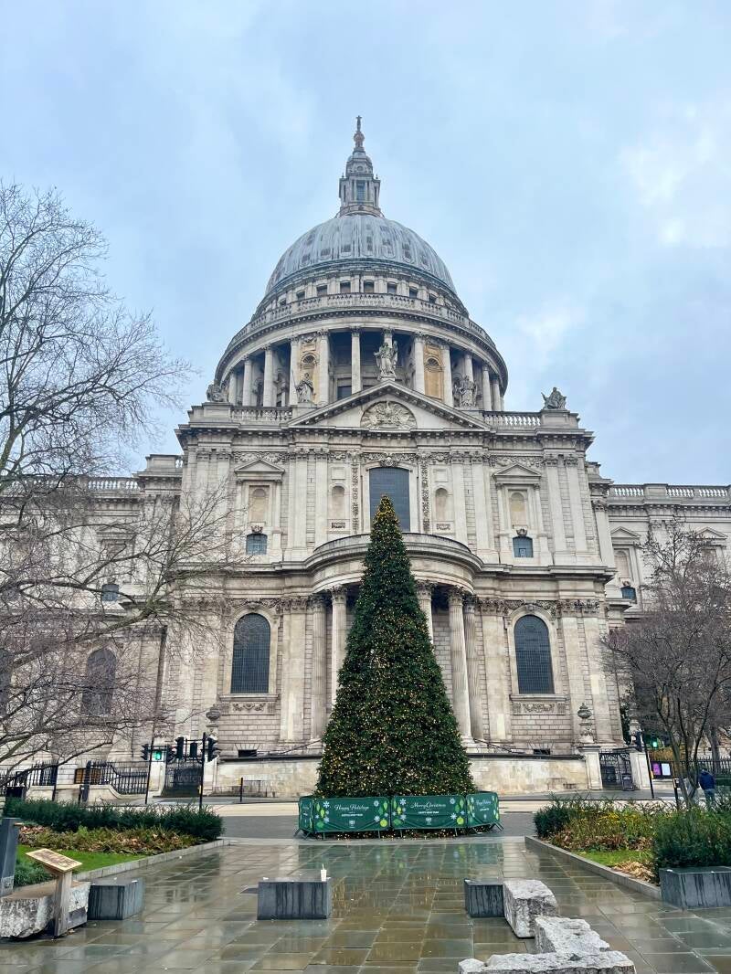 De prachtige brug leidt je naar St Pauls Cathedral. Kun je meteen de sierlijke kerstboom bewonderen.