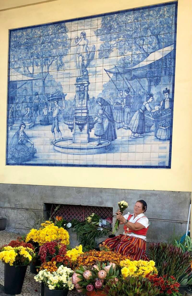 De bloemenmeisjes verkopen hun boeketten in de traditionele klederdracht. De kleding in Madeira is beïnvloedt door Portugese (Minho), Vlaamse, Afrikaanse en Moorse klederdracht. Het ziet er heel vrolijk uit, met name door die grappige mutsjes.
