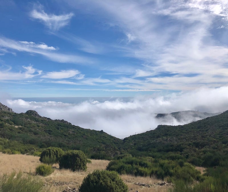 Na het ontbijt halen we onze Fiat Panda voor de laatste keer uit de parkeergarage Almirante Reis Car Park. Dit was de ideale parkeergarage voor ons. Dicht in het centrum en op loopafstand van ons Appartement Taberna 5. Het plan is om naar Pico do Arieiro te rijden, een van de hoogste toppen van Madeira. Je kunt daar via de ER 103 of de ER 203 naar toe rijden vanuit Funchal. Wij kozen voor het eerste en dat was absoluut niet handig voor onze Fiat. De ER103 leidt je over een ontzettend steile weg naar boven. Riëtte rijdt gelukkig, ik had het waarschijnlijk niet gered. Bij een van de kruisingen rolt ons Fiatje 2 keer naar beneden. Ik zag Pico do Arieiro al in duigen vallen, maar de 3e poging gaat goed, om links af te slaan. Deze weg kan ik dus echt niet aanraden :) Kies voor de ER 203 en volg daarna de borden.