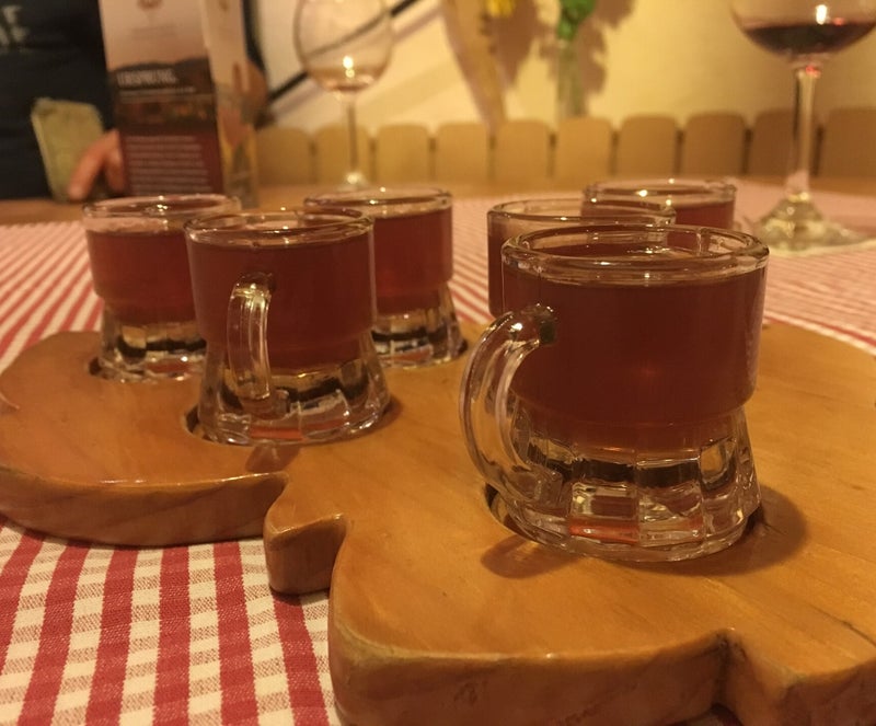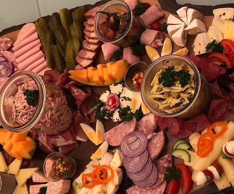 Duitsers zijn op hun best tijdens een etentje met vrienden en een drankje erbij. Het wordt een ontzettend gezellige avond. We bestellen een grote plank met van alles en nog wat, en het eten is heerlijk. Een aanrader wat mij betreft.
