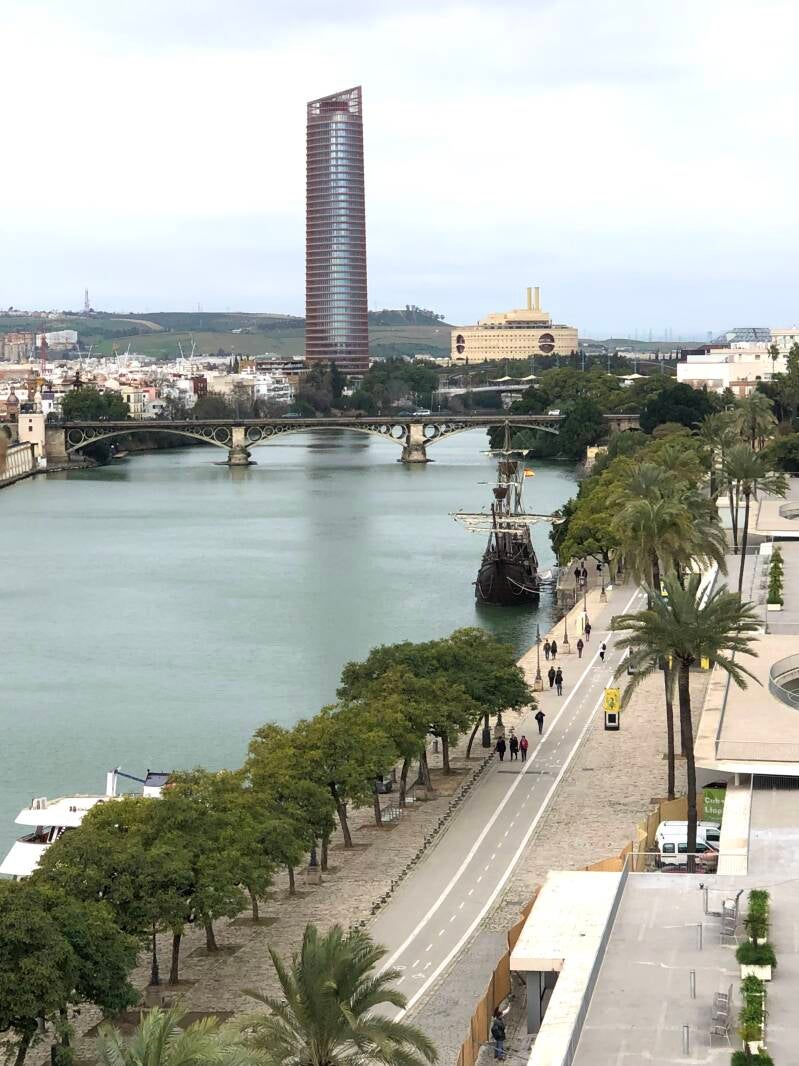 Vanaf het busstation wandel ik richting de Puente de Isabel brug. Je doorkruist daarbij de Jardines de Chapina. Een heerlijk parkje om te chillen, en te genieten van het uitzicht over de Río Guadalquivir. Río Guadalquivir is een 657 kilometer lange rivier die door de Zuid-Spaanse streek Andalusië vloeit. De rivier stroomt door meerdere steden voordat deze uitkomt in de Golf van Sevilla.