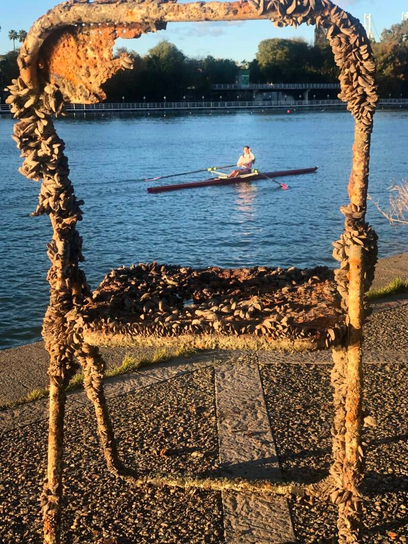 Omdat de wijk aan de rivier grenst, ben ik niet zo heel ver afgedwaald. Wanneer ik langs de Rio Guadalquivir blijf wandelen, kom ik vanzelf op het Plaza Armas. De rivier leent zich uitstekend voor watersport, en het nu zelfs druk op het water met dit mooie weer.