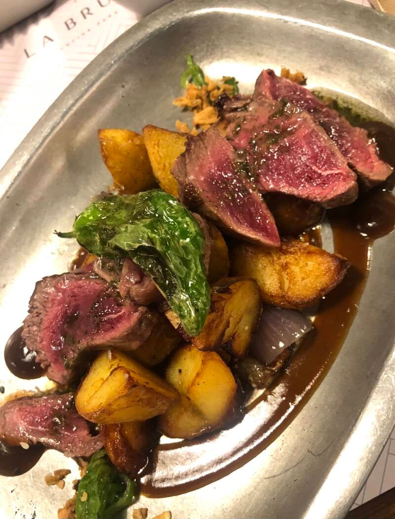 La Brunilda lijkt gesloten te zijn, maar de deur is gelukkig open. Eenmaal binnen sta ik perplex. La Brunilda is een piepklein restaurant en het zit stampvol. Ik moet dus buiten even wachten. Gelukkig mag ik na 10 minuten weer naar binnen, want er is een plekje vrij aan de bar. Dat is natuurlijk precies waar ik op hoopte. . Ik kom toevallig naast een Nederlands meisje te zitten, en we hebben een heel leuke avond. De tapas hier is fantastisch. Vanaf de bar heb je zicht op de koks in de keuken, dus laten we ons continu adviseren welk gerechtje we moeten proberen. Alles is even lekker. Het meisje en ik kletsen wat af ( ik ben haar naam helaas vergeten) en aan het eind van de avond delen we onze toetjes omdat we allebei niet kunnen kiezen.