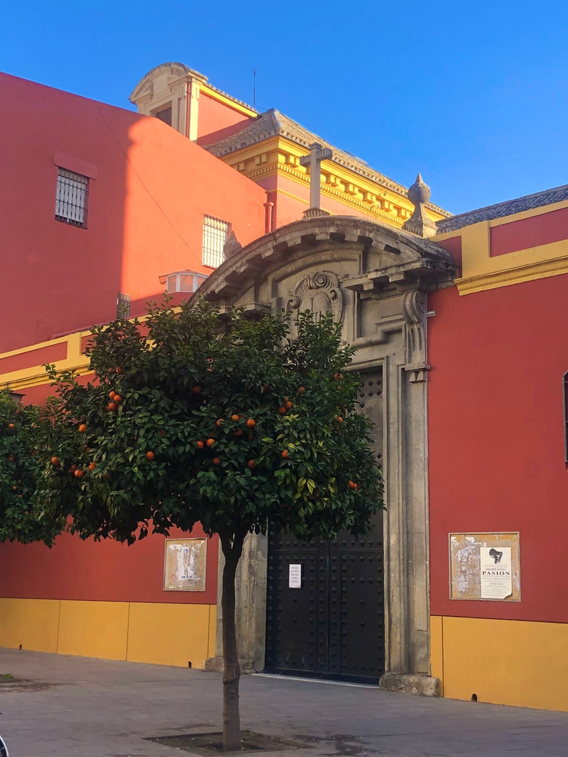 De reden waarom ik naar het Plaza de Toros ( arena voor stiergevechten) wil is dat ik het pand zo ontzettend mooi vind aan de buitenkant. Het geel met rood knalt je tegemoet. Ik ben helemaal niet voor deze stiergevechten, maar het hoort wel bij de Spaanse cultuur en voor Sevilla is het altijd nog een belangrijke vorm van vermaak helaas. De arena werd gebouwd in de 18e eeuw en biedt plaats aan 13000 toeschouwers.