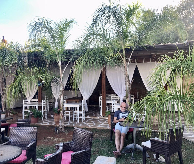 De dochter van de eigenaar Papi heette ons van harte welkom toen we aankwamen en er stond meteen een drankje klaar bij aankomst. Maxola's Dream ligt aan een doodlopende weg, met een fijn kiezelstrand tegenover de ingang. De ligbedjes en parasol zijn bij de overnachtingsprijs inbegrepen. Het ontbijt ook. Wij ploften na het inchecken op de ligbedjes met een lekker drankje en hebben de rest van de middag niets meer gedaan. Er is een restaurant en dat ligt op de eerste etage, met een prachtig uitzicht op zee. De menukaart is niet heel erg uitgebreid, maar de gerechten zijn heerlijk . Veel eigen verbouwde groente, en vis van de BBQ. Als afzakkertje kregen we eigen gemaakte Raki aangeboden van Papi. Raki is een traditioneel drankje en eigenlijk iedereen die een tuintje heeft brouwt het zelf. Meestal is het gemaakt van druiven of pruimen en er zit een alcohol percentage in van 40% De smaak zal daarom ook overal anders zijn, waar je het aangeboden krijgt. Ik zou zeggen, blijven proeven.
