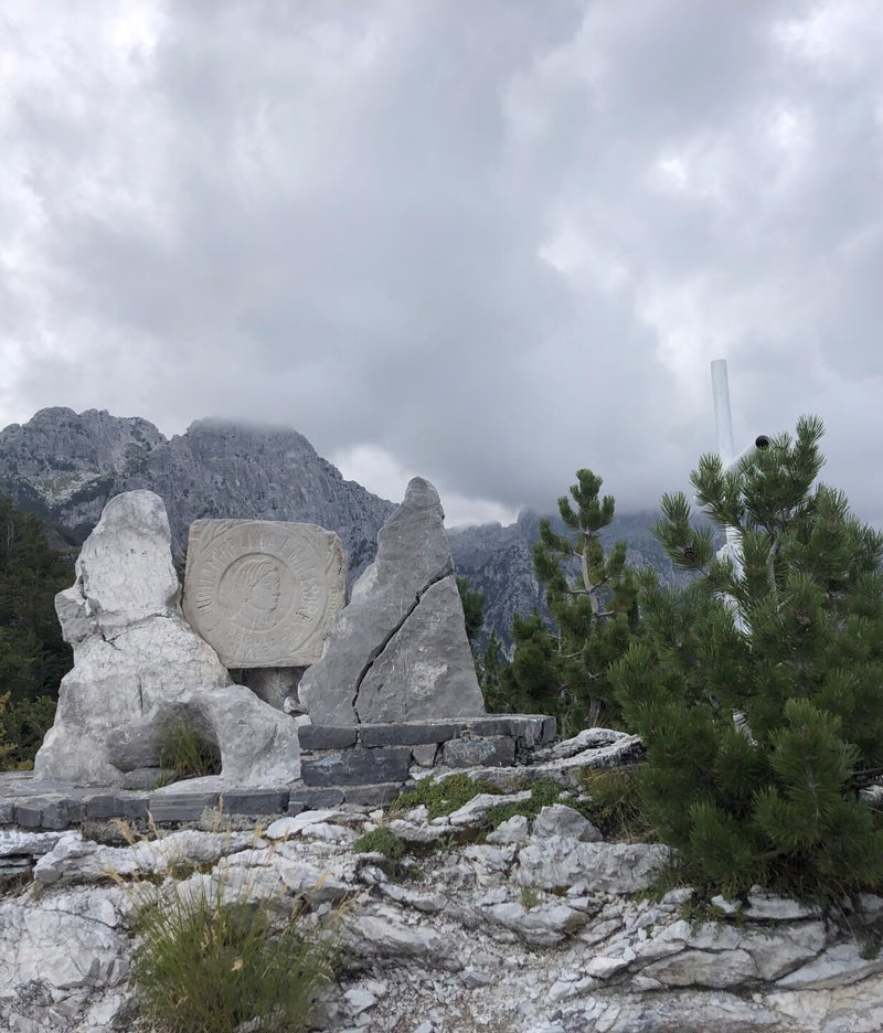 Wanneer we terug zijn, relaxen we in de zon, totdat het transferbusje er is. Het is een klein busje, waar we met 6 mensen en een chauffeur ingepropt mogen zitten. De rit terug duurt 2 uur, dus dat wordt even afzien. Onderweg is het uitzicht wederom geweldig mooi. We rijden een slingerende bergpas en stoppen onderweg bij het momument Edith Durham. Ze was een Britse kunstenares, antropologe en schrijfster die vooral bekend is om haar antropologische verslagen van het leven in Albanië in het begin van de 20e eeuw. Het monument staat op een plek met een waanzinnig uitzicht. Toch weer leuk van de chauffeur om op dit soort plekken te stoppen. Meteen een goede reden voor een fooi aan het einde van de rit.