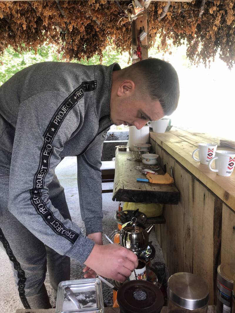 Deze overtocht is de volgens mij de mooiste veerdienst binnen de Balkan . Op de boot kun je koffie halen en er zijn wat snacks te koop. Halverwege halen we koffie en komt er een plekje aan de zijreling vrij, waar we kunnen zitten. Daar zijn we blij mee, en we blijven dan ook zitten, totdat we 1,5 uur later in Fierze aankomen. Op de parkeerplaats in Fierze staan volop minibusjes, en op 1 van de busjes staat het Guesthouse Arben Seliman. Daar moeten wij in. Het guesthouse is geregeld door het Wanderers Hostel, dus we hebben geen idee, hoe het eruit ziet. Het is een uurtje rijden, en dan komen we uit bij een klein stroompje. We mogen het bruggetje over, en het guesthouse ligt idyllisch in het groen. We zijn met een grote groep, waarvan de meesten stukken jonger zijn dan ons. De eigenaresse is een ontzettend lieve vrouw, die elke dag mega druk is met wassen en koken voor haar gasten.