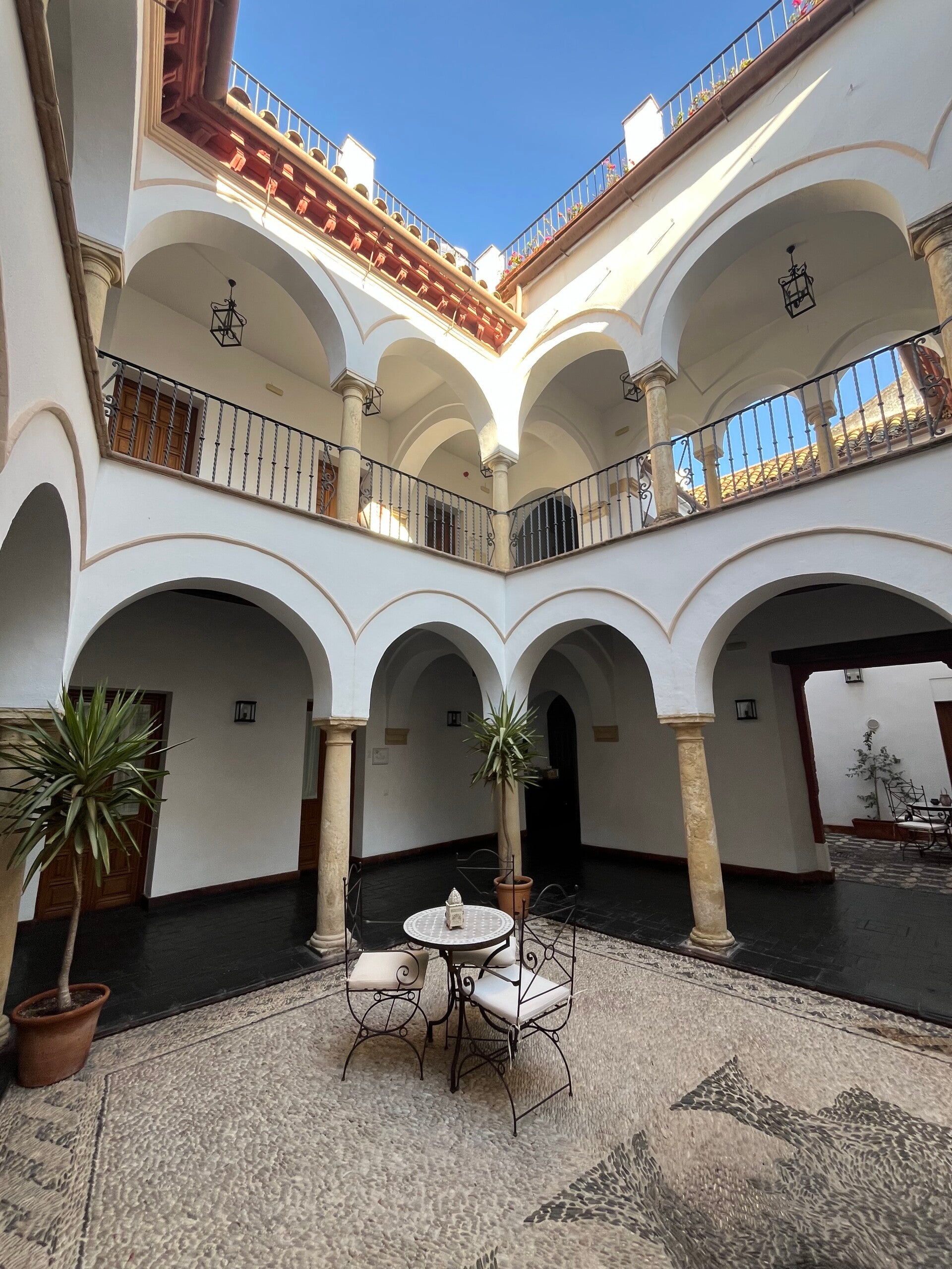 Dit prachtige appartementen complex in Andalusische stijl ligt heel centraal aan de rand van de wijk Juderia. Er zijn supermarkten en restaurant in de buurt. Het appartement is ruim en schoon. Een Andalusisch appartementencomplex straalt warmte en elegantie uit en dat is hier ook zo. We hebben een kamer met aparte slaapkamer, de badkamer is groot en er staan koffiecups in de goed uitgeruste keuken. De grootste bonus is een fantastisch dakterras. Een aanrader voor een nachtje Cordoba.
