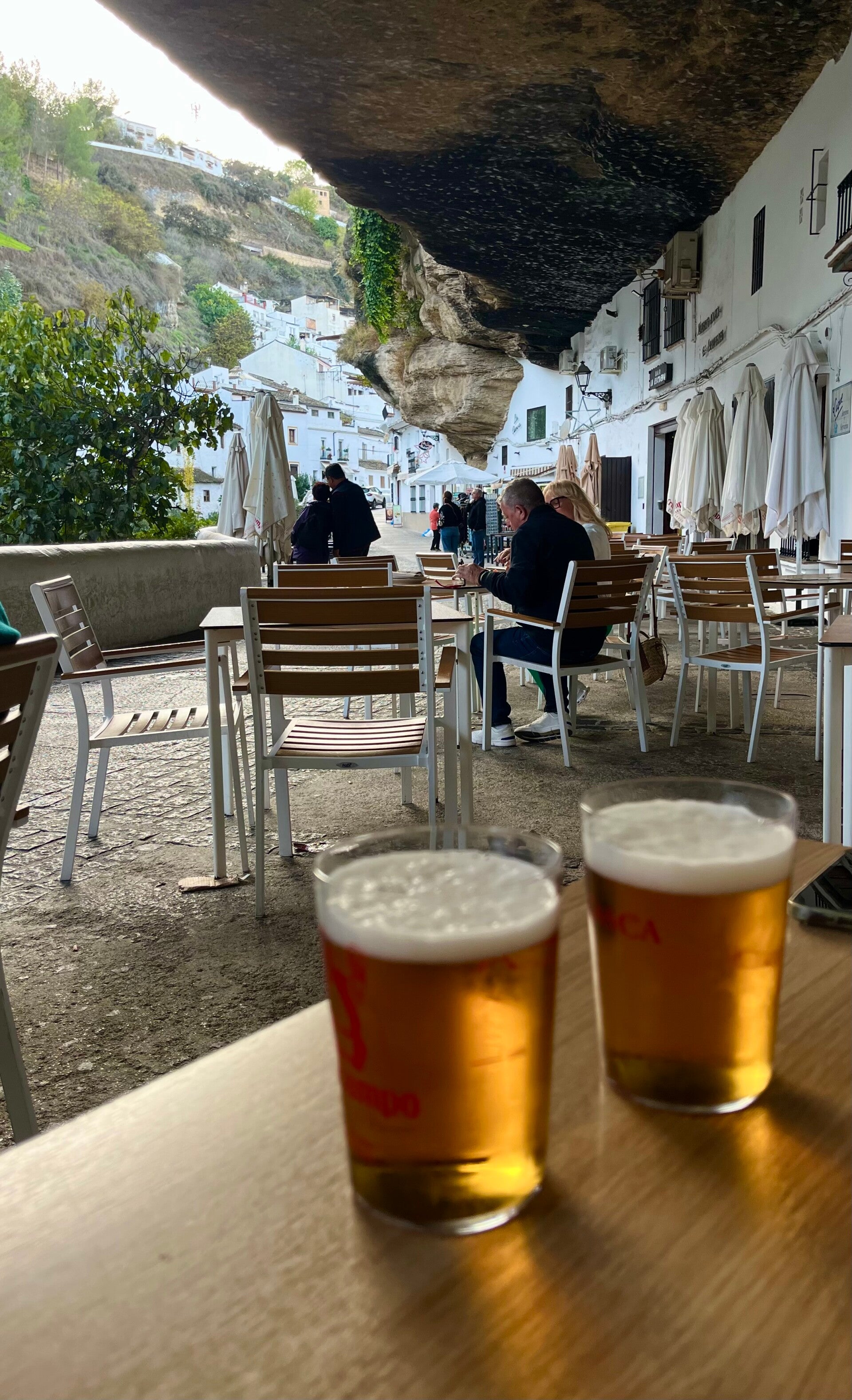 We hebben toch ruim 2 uur rondgewandeld als we weer in de hoofdstraat Calle Cuevas del Sol zijn. De zon is al achter de rotsen verscholen, maar in de zomer kun je hier op een terrasje fijn bijkomen. Wanneer je een tour boekt, kijk dan van te voren hoeveel tijd er voor Setenil de Las Bodegas gereserveerd is. Je kun het in 1,5 uur bekijken maar ietsje langer is leuker.