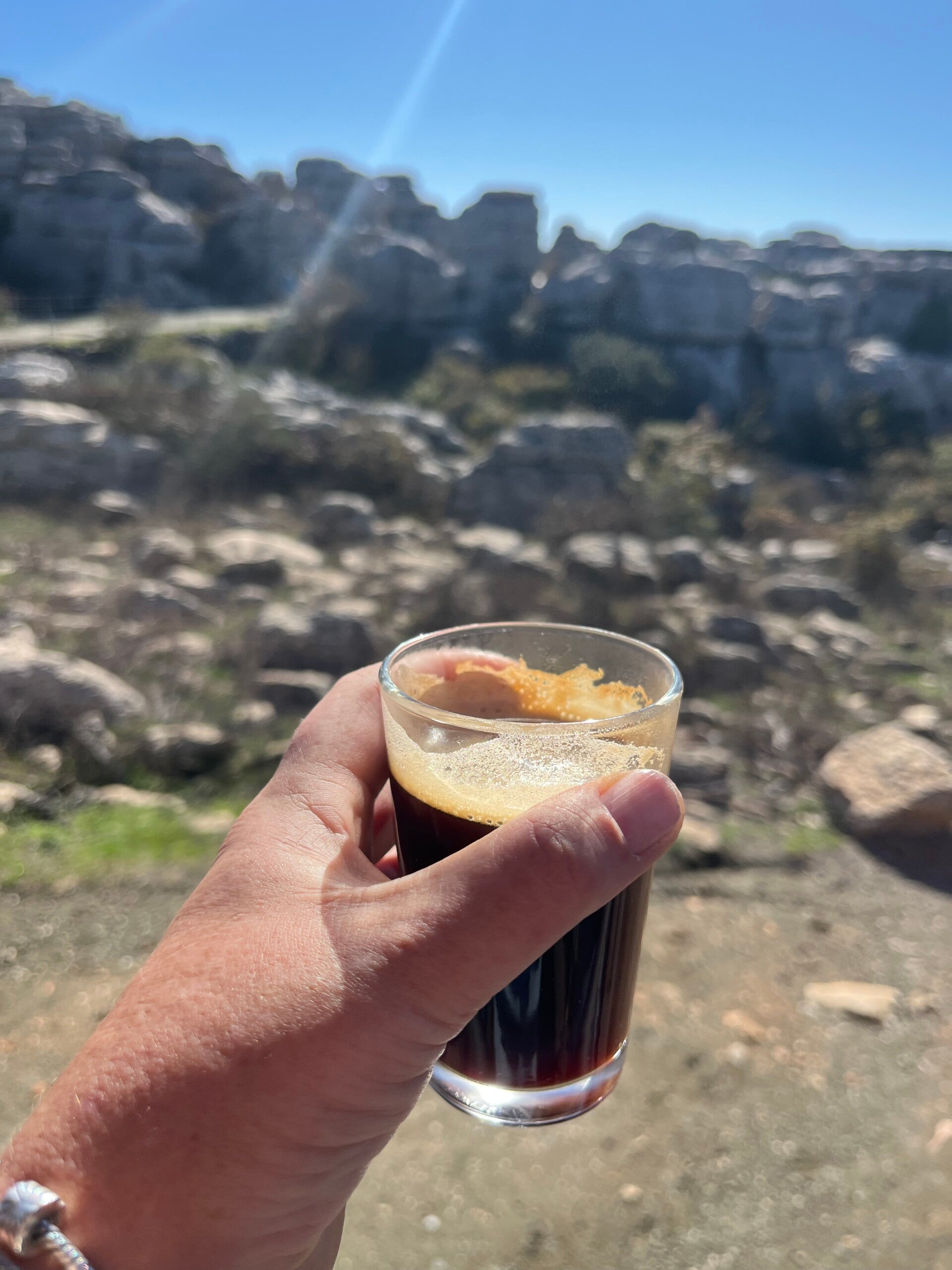 El Torcal, vlak bij Antequera in Andalusië, voelt als wandelen op een andere planeet. De bizarre rotsformaties zijn bijzonder in hun soort. Het natuurpark is redelijk makkelijk te bereiken, alleen het laatste stuk naar het bezoekerscentrum gaat via een steil en bochtig weggetje. Maar dat is al prachtig om te zien. Marit, onze dochter rijdt, dus ik kan lekker van het uitzicht genieten.