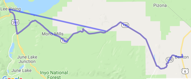 We rijden nog een stuk verder over Route 95 en slaan dan links af de Hwy 266 op richting Benton. Waarom doen we dat? Vanaf Benton naar Mono Lake rijdt je over Roller Coaster Road Hwy 120. Een prachtige route die als een achtbaan door het landschap kronkelt.
