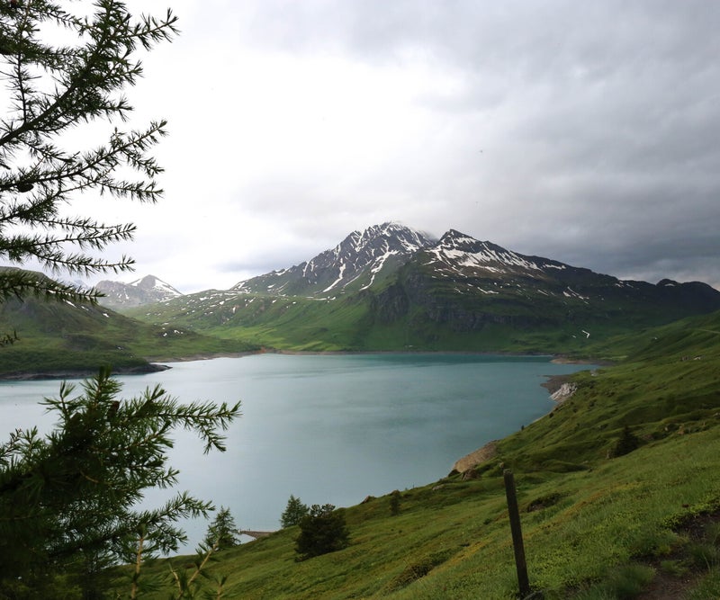 Lac du Mont Cenis ligt in de Haute Maurienne in Frankrijk aan de andere kant van de Susa Vallei. Het meer is geen natuurlijk meer, maar gecreëerd in de jaren 1960 na de bouw van een waterkrachtcentrale. Je kunt er niet in zwemmen, maar het is een heerlijke plek om te fietsen of te wandelen. We staan allebei versteld van de ontzettend mooie blauwe kleur. Toen we hier vanmorgen langs reden scheen de zon, maar nu het iets bewolkter is geworden, doet het niets aan schoonheid af. Omdat het meer vrij hoog ligt, is het hier altijd is frisser.