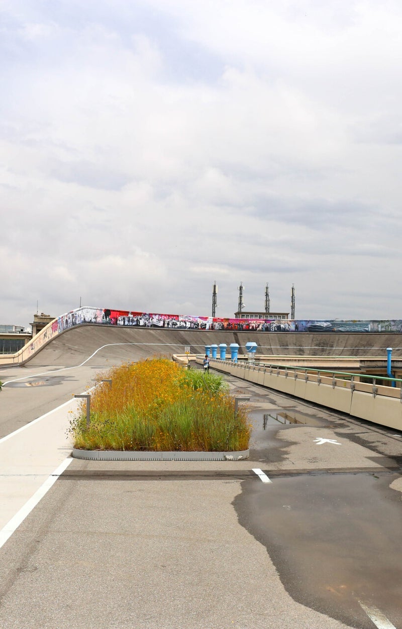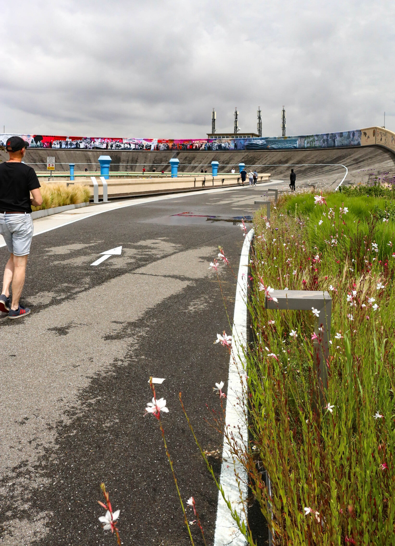 De testbaan is continu ingericht met kunst, en er staan veel verschillen planten en bomen. Dat maakt het meer dan alleen maar een strook beton. Het is prachtig. De Testbaan is 1,5 km lang en het is superleuk om helemaal rond te lopen.