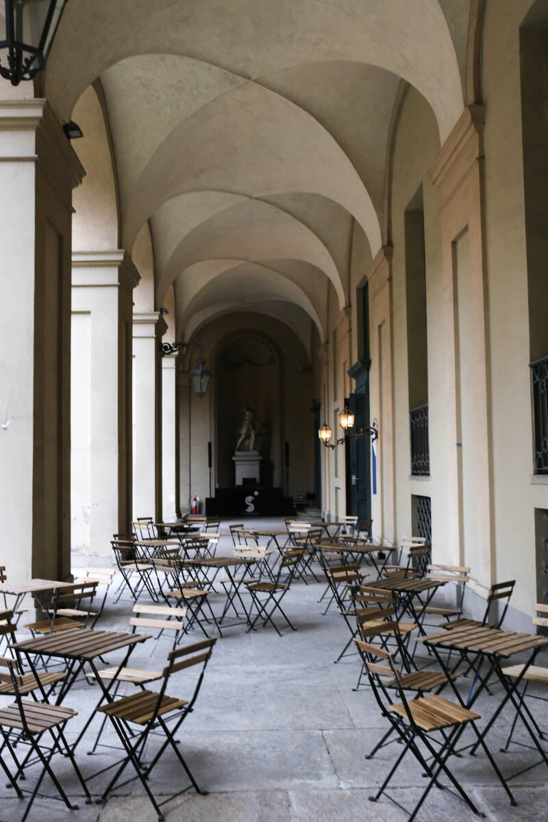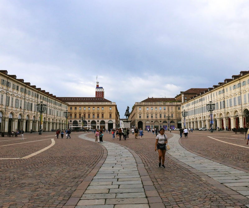 Het eerste plein dat je tegenkomt is het Piazza San Carlo, een van de vele mooie pleinen die Turijn rijk is. Aan weerszijden vindt je vele terrassen en winkels. Ook hier wandel je onder statige bogen. Ideaal als het wat minder weer is zoals nu.