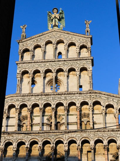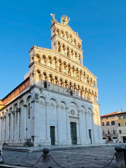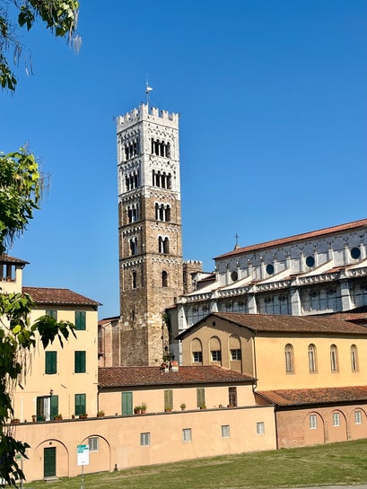 Lucca wordt ook wel de stad van de " 100 Kerken" genoemd. Eenmaal binnen de muren, zie je de San Michele in Foro kerk, een pareltje. De prachtige uitgewerkte voorgevel is super mooi. Een andere kerk die je niet gauw over het hoofd ziet is de Basiliek van San Frediano. De toren zie je al van verre.