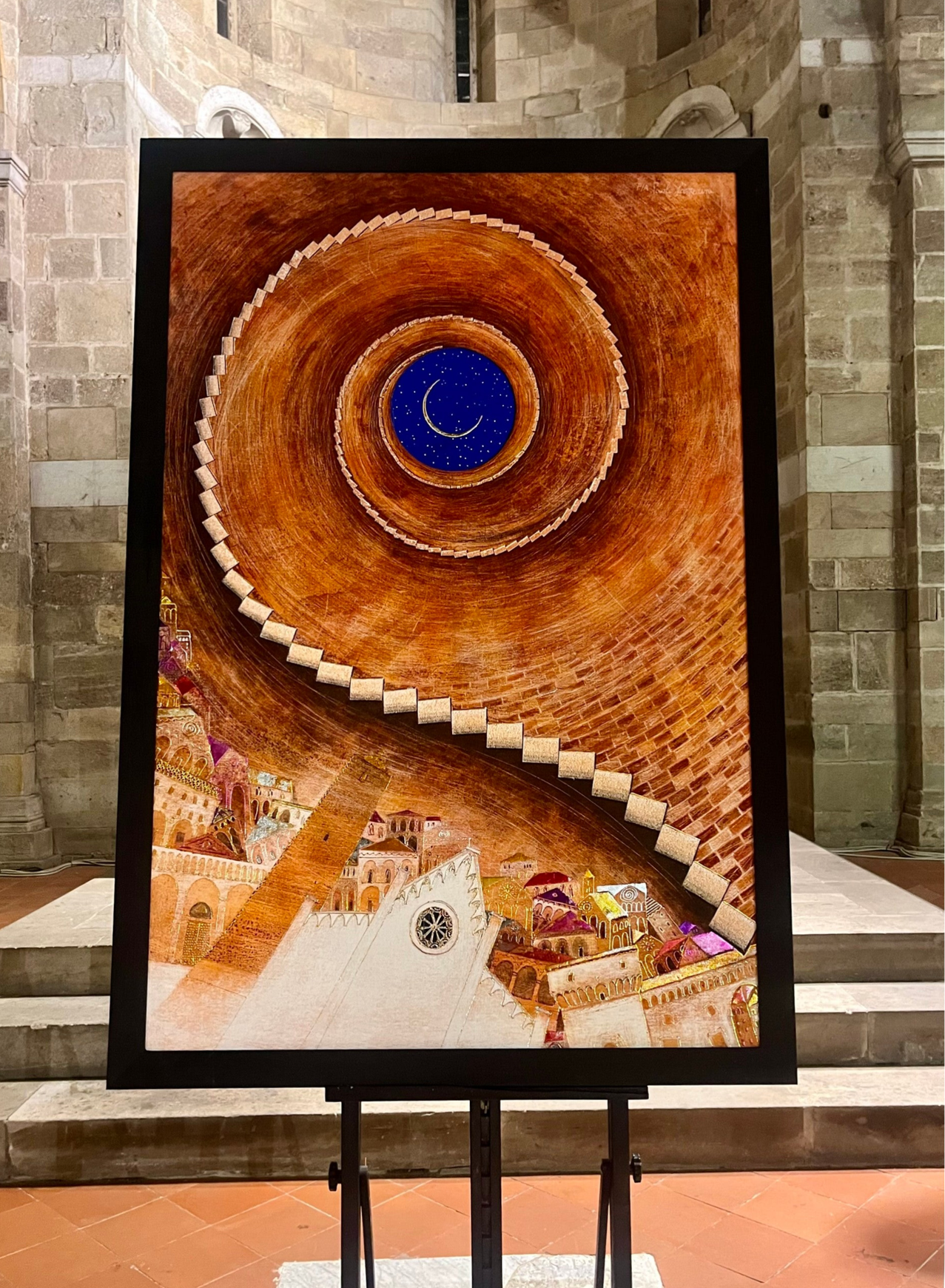 Wanneer je in de zomer in Lucca bent, dan is de kans groot dat je in het Summer Festival beland. Elke zomer biedt het Lucca Summer festival een programma boordevol top acts. Wij zijn hiervoor net te laat, maar er valt nog genoeg te beleven. Op de vele pleintjes en in de smalle straatjes klinkt overal muziek. Het een is beter dan het ander, maar dat mag de pret niet drukken. In verschillende kerken worden exposities gehouden van plaatselijke kunstenaars. Wij vallen als een blok voor het kunstwerk Campanile, interno con Luna, ( Klokkentoren, interieur met maan ) van Paolo Lazzerini. Hij heeft een galerie in Lucca, maar verkoopt tijdens het festival werken in het kerkje aan de leuke winkelstraat Via Fillungo. Het is niet echt handig om aan het begin van je vakantie al met een kunstwerkkoker rond te moeten reizen, maar dit zijn eigenlijk wel de leukste souvenirs.