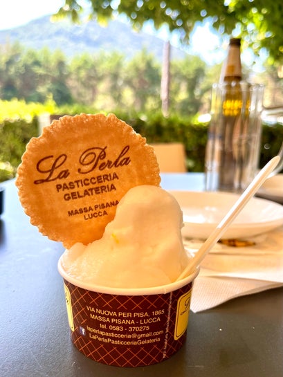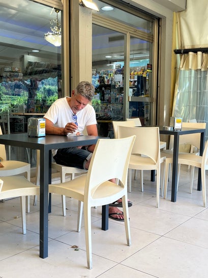 Nadat we ingecheckt zijn met een beetje handen en voetenwerk; de oudere dame spreekt weinig tot geen engels, zoeken we eerst een restaurantje waar je kunt eten. Op 5 minuten lopen vindt je een " van - alles - en - nog- wat" barretje La Perla. Ze verkopen hier broodjes, koffie, cocktails, ijsjes en er is een kiosk. De locale bevolking loopt in en uit en het is super leuk om te zien hoe dat gaat. Vooral de krasloten bij de kiosk zijn erg in trek. Helaas vallen de mannen niet in de prijzen, want we horen geen enkel teken van blijdschap. De broodjes zijn prima, maar neem vooral hier je eerste Italiaanse ijsje. Ze hebben veel smaken, en het is lekker ijs.
