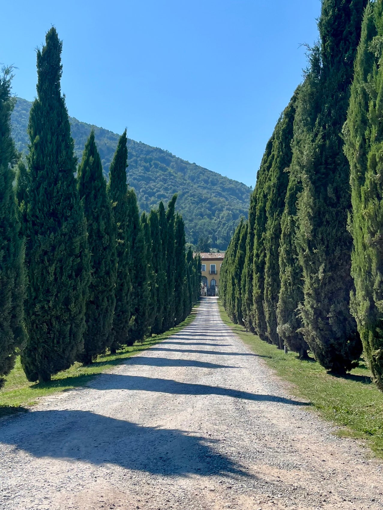 Wil je nou even snel een prachtige Cipressenlaan meepakken, wandel dan vanaf Bar La Perla naar Hotel Restaurant Villa Cheli. De laan naar het hotel is waanzinnig mooi. Ik dacht: Als ik binnen een uur na dat we in Toscane zijn al zo'n plaatje kan schieten, dan komt het helemaal goed met deze vakantie.