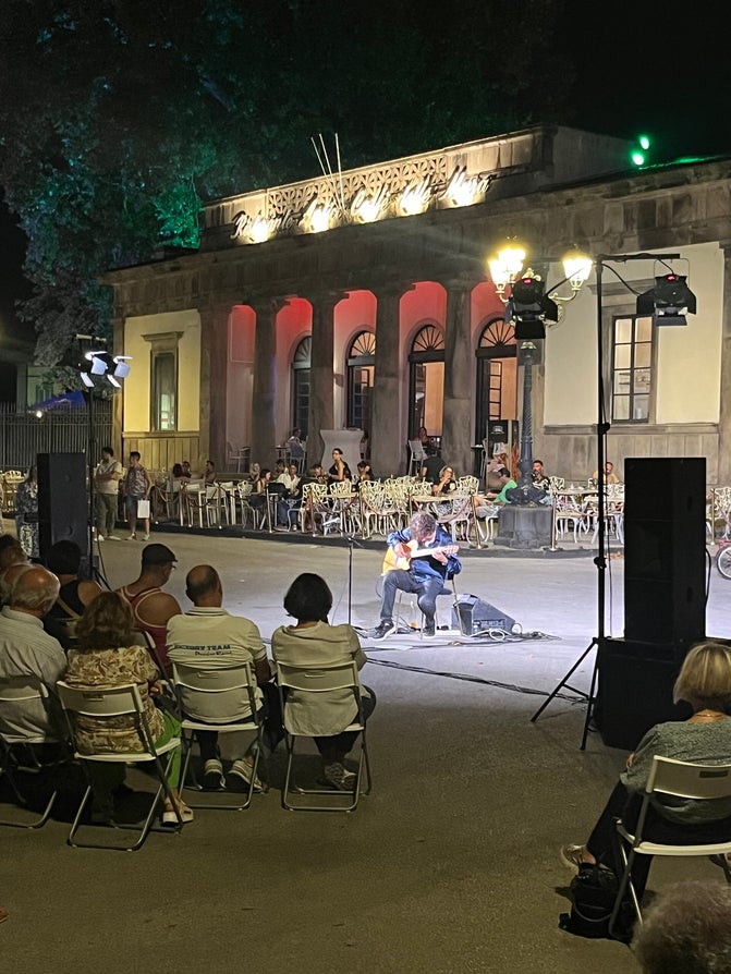Vanwege het Summer Festival, spelen er dus overal muzikanten. Op het grote plein bij Antico Caffè delle Mura op het Vittorio Emanuel II speelt een geweldige gitarist de sterren van de hemel. Een mooie afsluiting van onze 1e dag in Toscane.