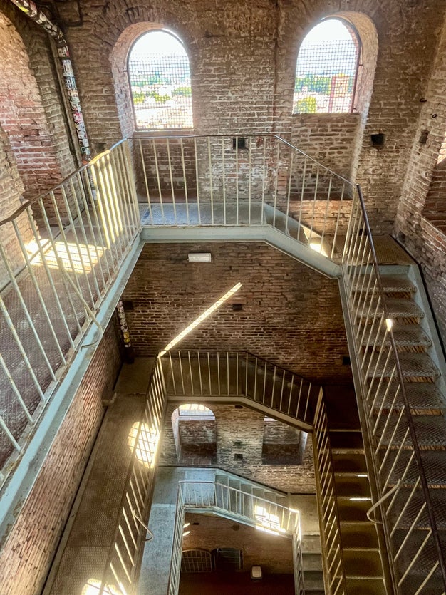 Wanneer je de stad door een van de vele stadspoorten binnenkomt, kun je eigenlijk meteen met een wandeling of fietstocht over de stadsmuren beginnen. Wij komen via de Porta San Pietro binnen, en klimmen meteen de trappen omhoog. De muren zijn ongeveer 30 meter breed en 4 km lang.