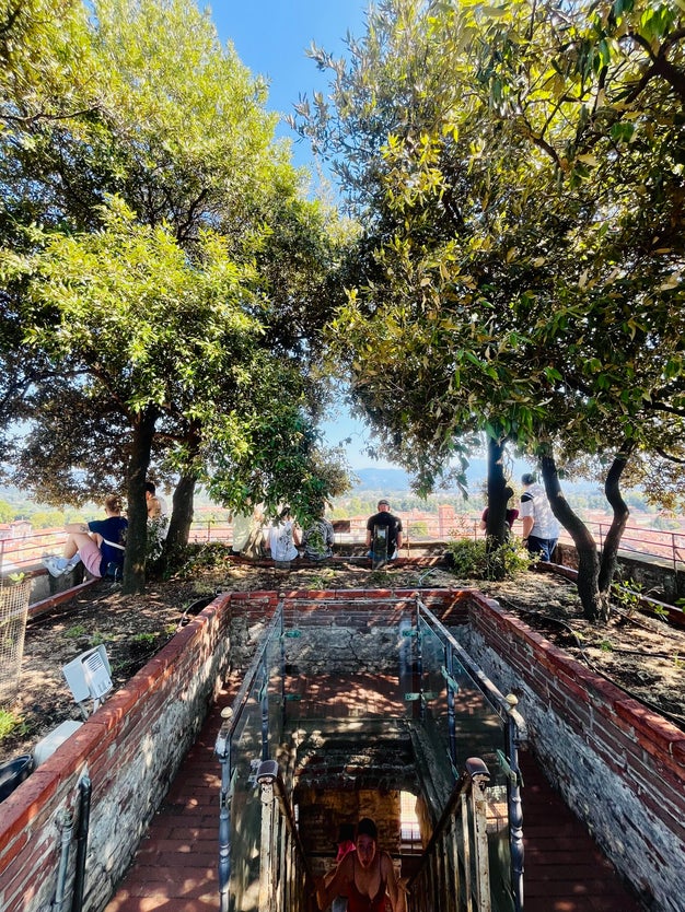 Wat je absoluut niet mag overslaan is de Torre Guinigi. Wanneer je door de sfeervolle straatjes loopt, zie je hem ineens opdoemen: een middeleeuwse toren met... bomen bovenop! De Torre Guinigi, hét symbool van Lucca en misschien wel de meest fotogenieke plek van de stad.