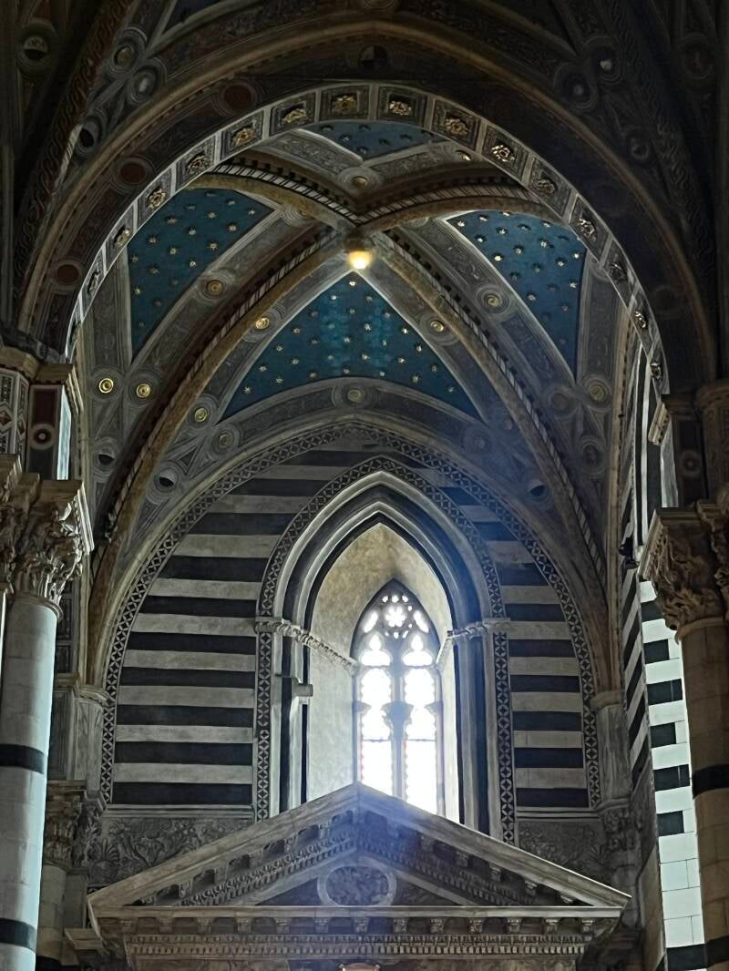 Deze bibliotheek, in opdracht van kardinaal Francesco Piccolomini (de latere paus Pius III), werd in de 15e eeuw ingericht om de waardevolle collectie handschriften van zijn oom, paus Pius II, te bewaren. Wat het meest indruk maakt zijn niet de boeken, maar de schitterende fresco’s van Pinturicchio en zijn atelier, die het levensverhaal van Pius II vertellen en deze zijn schitterend bewaard gebleven. Het plafond lijkt een levend tapijt van kleuren en goud. Ik krijg gewoon een stijve nek van het omhoog kijken. Zooo mooi! De bibliotheek voelt helemaal niet als een stille studieruimte maar meer als een kunstwerk op zich!