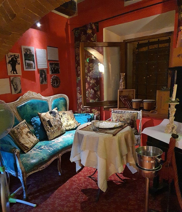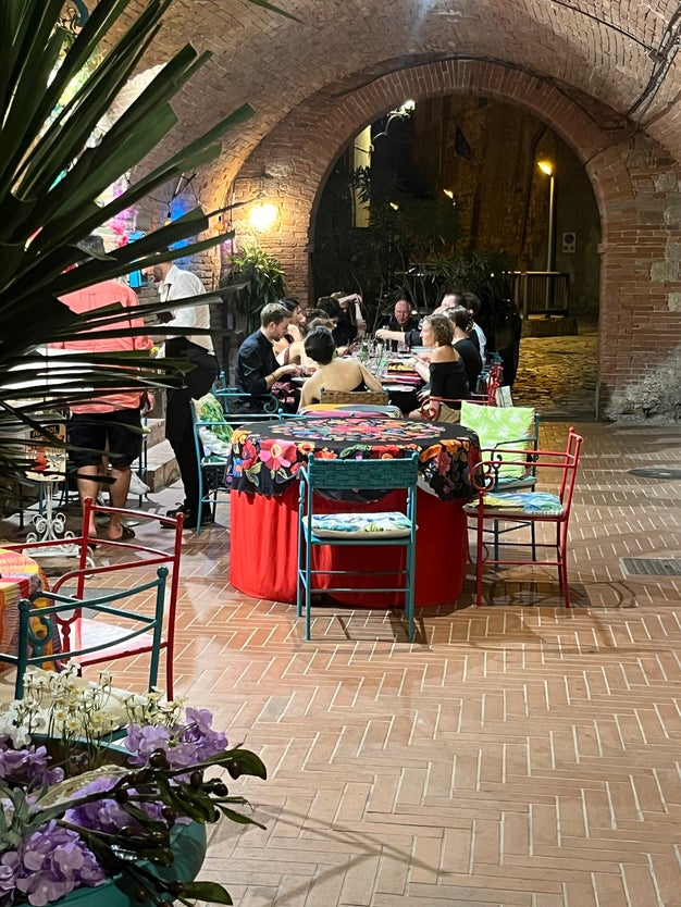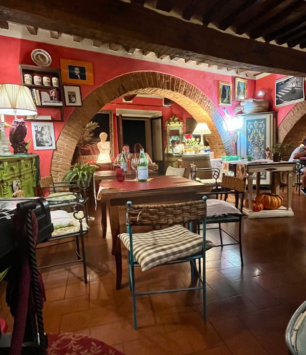 We komen langs een ontzettend vrolijk gekleurd restaurantje en besluiten daar te gaan eten. Bij Ristorante degli Archi kijk je je ogen uit. Het kleurrijke restaurant staat bomvol tierelantijntjes en combineert verschillende stylen door elkaar.