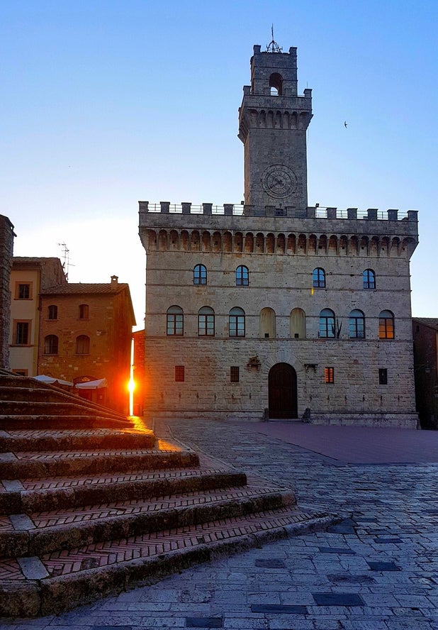 Omdat het in het begin van de week zo regende in Montepulciano, rijden we vanavond nog een keer terug. Het is zo'n gezellig dorpje. Onderweg pikken we nog een van de mooiste zonsondergangen in Val d'Orcia mee. Wat een geluk!