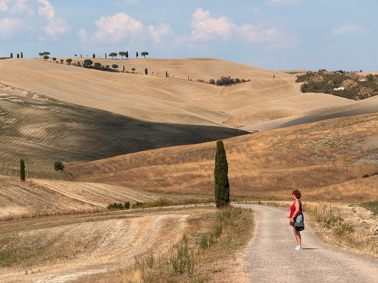 We verblijven een aantal dagen in een van de mooiste streken van Toscane, Val d'Orcia. De streek is beroemd om z'n cipressen, Zig zag laantjes, de films The Gladiator en The Englisch Patiënt en de goudgele akkers. Ik had bedacht om met onze gehuurde Bolide dwars door de Riserva naturale Lucciola Bella te rijden naar het sfeervolle stadje Montepulciano. Een strak plan thuis, in werkelijkheid was het niet zo eenvoudig. Maar.....laat je niet weerhouden deze route te rijden als je avontuurlijk bent aangelegd. Het is echt een prachtig stukje Val d'Orcia.
