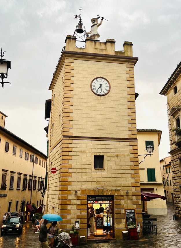 We rijden daarna door naar Montepulciano, een van de meest populaire dorpjes in Val d'Orcia. Eigenlijk valt het net buiten deze streek, maar dat stoort niemand zich aan. Montepulciano is een van die Toscaanse stadjes waar je meteen verliefd op wordt. Het dorpje ligt op een heuvel met uitzicht over de Val d'Orcia, het barst er van de wijnkelders en mooie winkeltjes waar je je souvenirs kunt scoren. Wanneer we net buiten de dorpje parkeren, komt de regen en hagel met bakken uit de lucht. We waren er al bang voor, want die dreigende luchten voorspelden niet veel goeds. Ontzettend jammer, want zo'n mooi dorpje wordt dan meteen wat troosteloos.