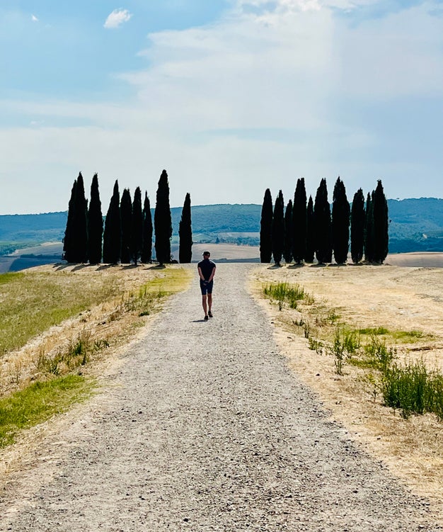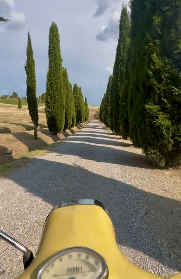 Het is ondertussen al wat later in de middag, dus stappen we opnieuw op de scooter voor het laatste stuk terug naar Pienza. We nemen een zandpad ipv van de geasfalteerde SP88 en komen een fantastisch pad tegen met Cipressen van Azienda Agricola Le Traverse. Een hidden gem, waar je zeker even een kijkje moet nemen tijdens deze tour door Val d'Orcia.