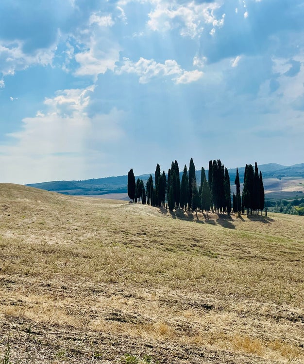 Rijd je door de Val d’Orcia, dan herken je het meteen: de golvende heuvels, gouden akkers en dat ene iconische groepje cipressen dat trots boven de aarde uittorent. De Cipressi di San Quirico d’Orcia zijn misschien maar een handvol bomen, maar ze zijn uitgegroeid tot hét symbool van Toscane. Zoek je met google foto's van Toscane, dan komt deze plek steevast voorbij.