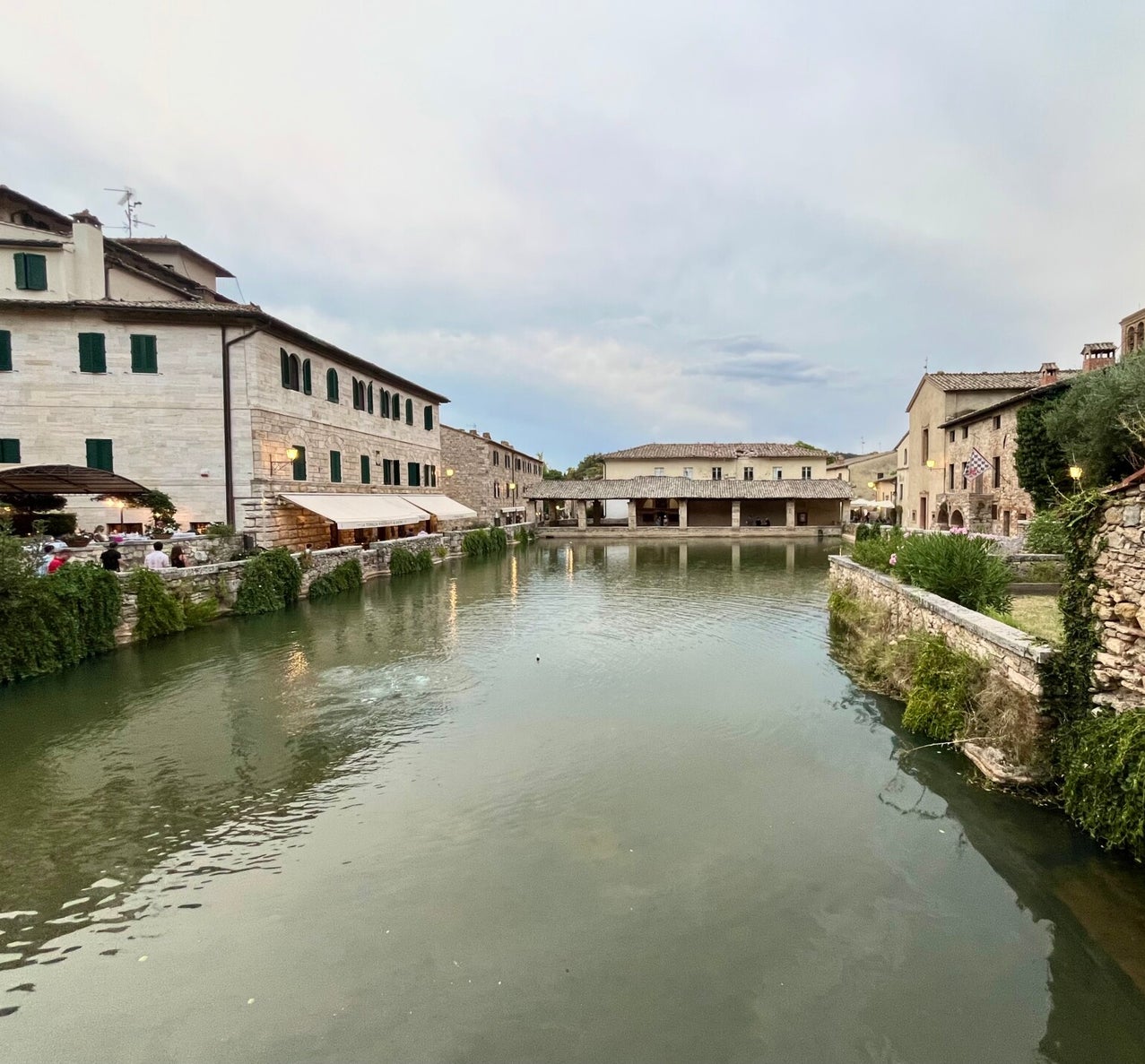 Vanaf de Cipressi di San Quirico d’Orcia kun je het dorpje San Quirico d'Orcia in voor een pauze. Het historische centrum is klein maar prachtig bewaard gebleven. Het dorpje heeft een mooie een 16e-eeuwse renaissancetuin waar je tussen de geometrische heggen heerlijk kunt rondslenteren. Dat doen wij niet, want we rijden door naar Bagno Vignoni. Dit piepkleine dorpje heeft geen gewoon plein met een fontein maar een plein gevuld met thermaal warm water. Rondom dit waterplein vind je natuurlijk wel gezellige terrasjes.