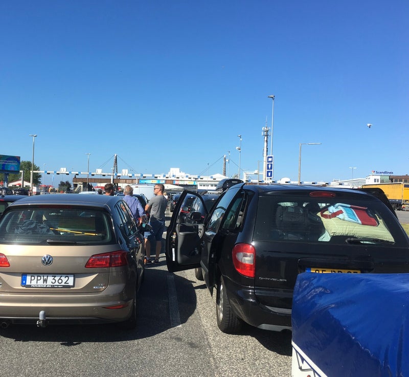 Vanaf Rostock gaat er geen boot meer, waar wij nog met mee kunnen. We besluiten daarom naar Puttgarden Ferryterminal te rijden in Duitsland , en daar maar te zien met welke veerdienst we mee kunnen naar Rødby in Denemarken. We zullen dan vanaf Denemarken verder rijden naar Zweden. De overtocht duurt 45 minuten, en vaart meer dan 40 x per dag. Er is vast nog wel een keer een plekje vrij voor ons. De rit verloopt prima, en er zijn geen files. Onze favoriete rijdag is donderdag, dan lijkt het toch minder druk te zijn met vakantiegangers.